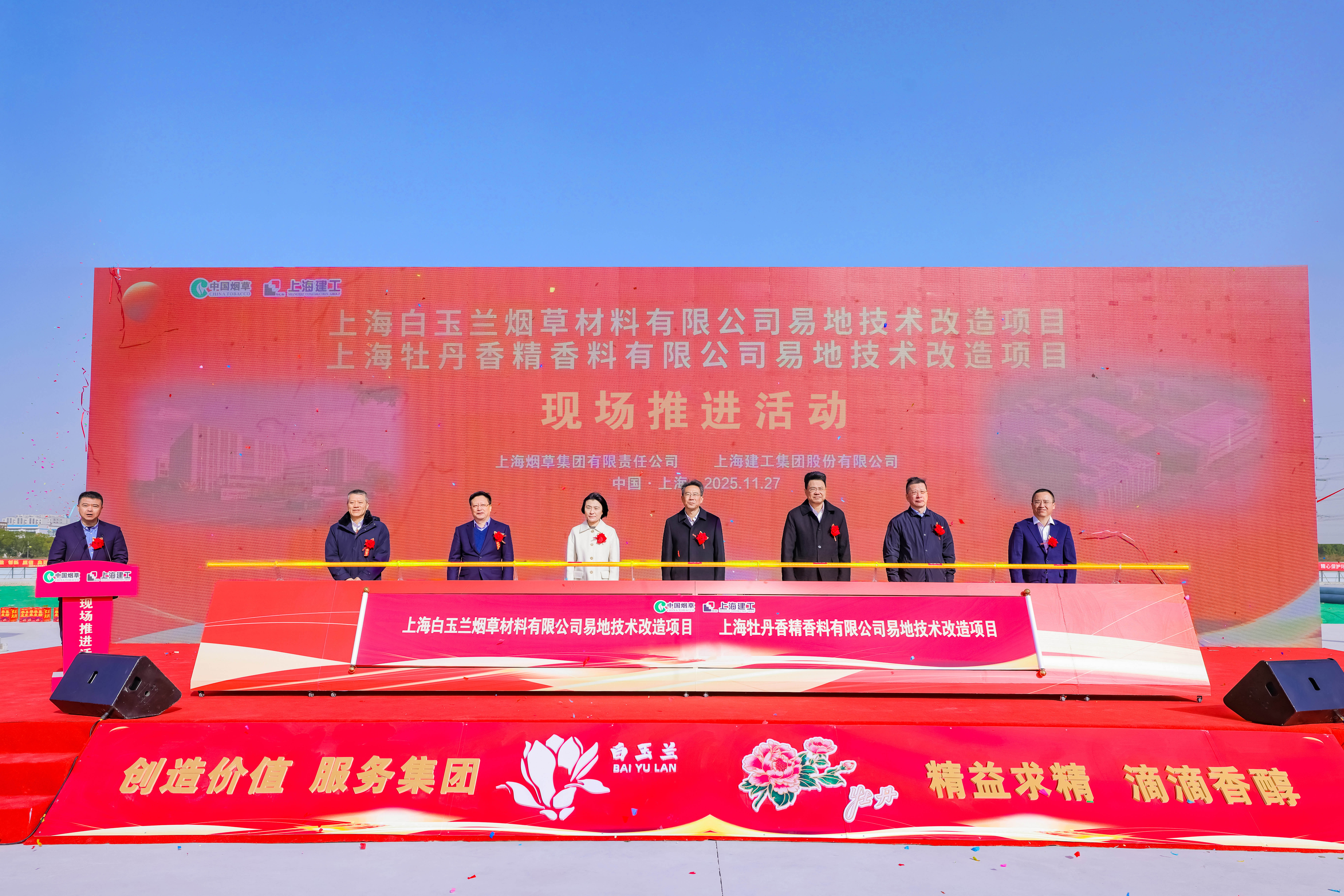11月27日上午,由七建集团承建的上海牡丹香精香料有限公司易地技术改造项目举行现场推进活动。上海市烟草专卖局、上海烟草集团党组书记、局长、董事长、总经理王志江,党组成员、副总经理周铭,中国烟草总公司合肥设计院党委书记、院长徐晓新,上海建工集团党委副书记、总裁叶卫东,党委委员、副总裁徐建东,七建集团党委副书记、总裁徐安军,副总裁周军等出席。 项目位于浦东新区航头镇,总用地面积约2.11万平方米,总建筑面积约2.56万平方米,主要建设内容为联合厂房、危化品库、香精香料配制及原料提取工房等。建成后,将形成年产800吨烟用香精、1280吨烟用料液的核心产能,以行业一流的研发创新实力与全方位的精准风险管控体系赋能产业升级,为区域产业发展与经济注入新的活力。 |